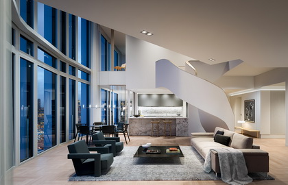 利用中心岛台为支点设计出吧台般的就餐台,可以满足喜爱西式早餐人群的需求。在进餐的同时还可以看书报、从事简易的工作,这款设计利用不同的高度增加了空间的视觉效果。