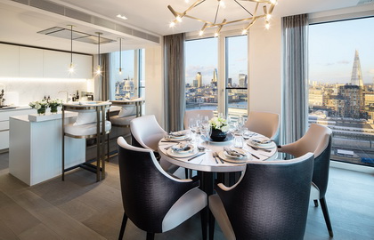 L形橱柜十分节省空间,易于收纳。利用橱柜末端拐角搭建的小形餐台,可以充分利用橱柜这一区域的死角,既增加了结构的紧凑感,又能满足功能需求,在有限的空间里做到最大化的合理利用。